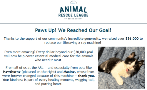 PS: You can support the Animal Rescue League of Berks County by clicking here